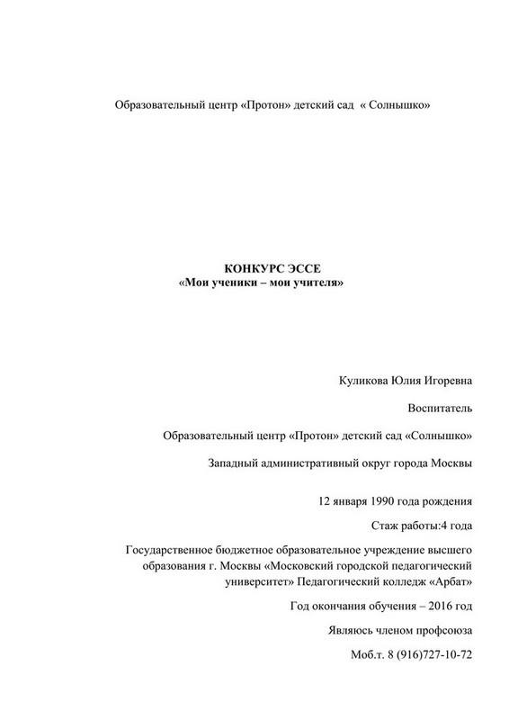 Всероссийский творческий конкурс «День воспитателя»