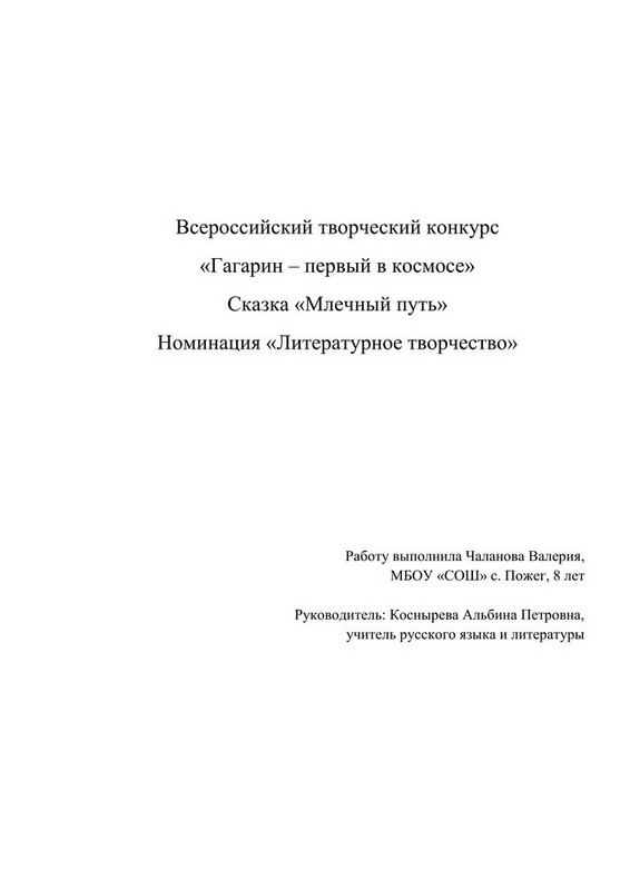 Всероссийский творческий конкурс «Гагарин, Первый в космосе»