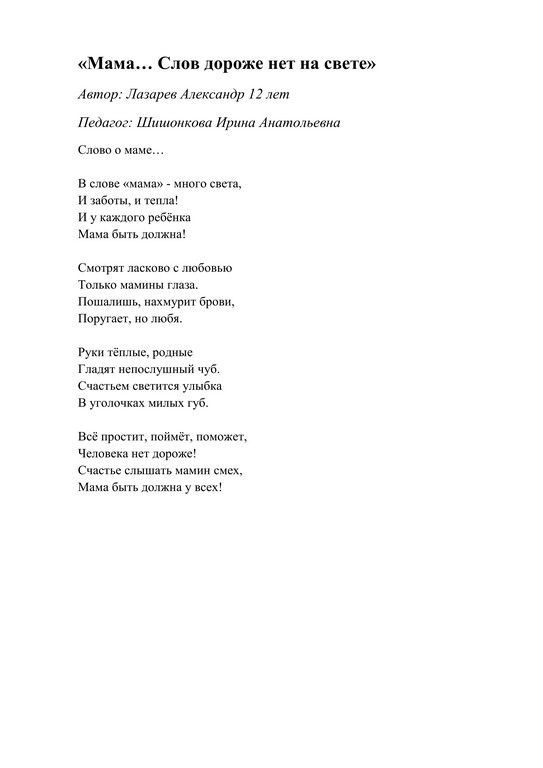 Всероссийский творческий конкурс «Мама... Слов дороже нет на свете!»