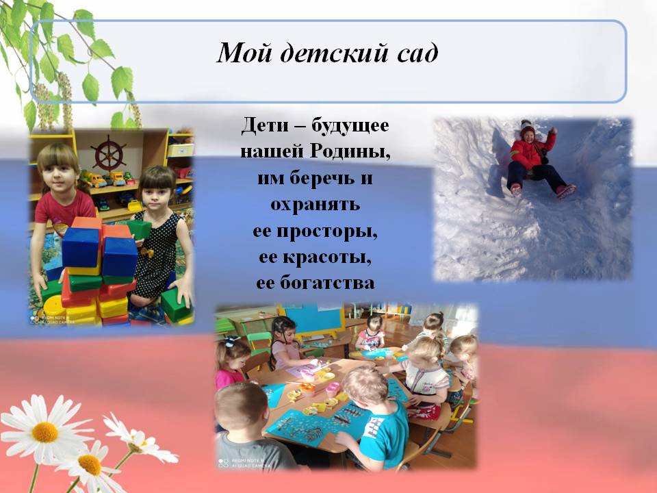 Воспитательно-образовательная работа распределена по блокам - «Моя семья», «Мой детский сад», «Моя малая родина», «Культура и традиции», «Моя страна», «Будем Родине служить».