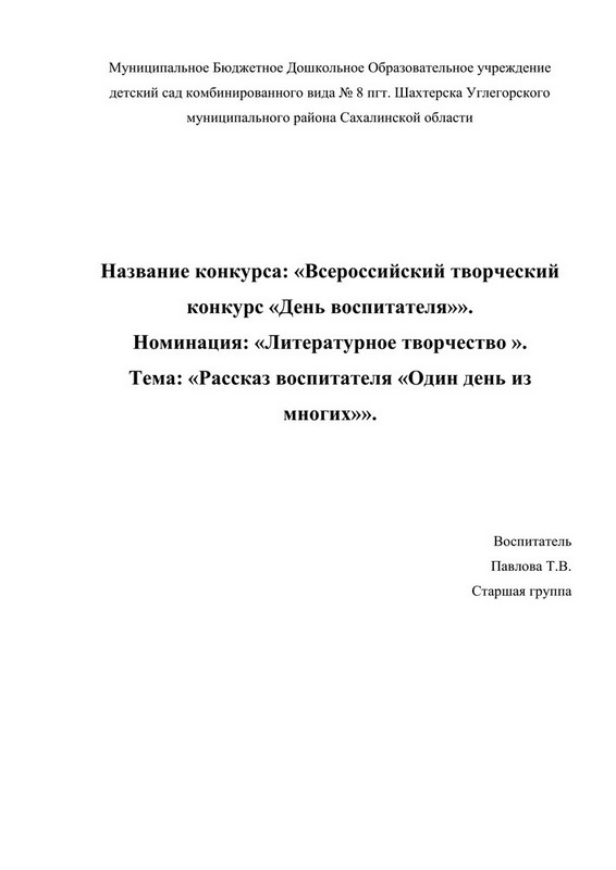 Всероссийский творческий конкурс «День воспитателя»