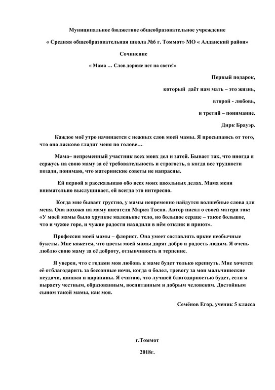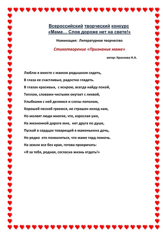 Всероссийский творческий конкурс «Мама... Слов дороже нет на свете!»