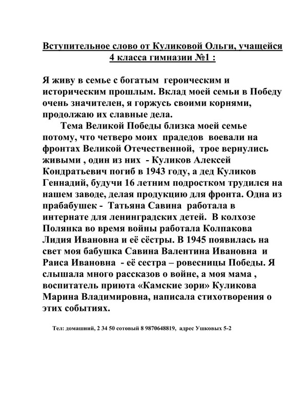 Всероссийский конкурс "Победа в сердце каждого"