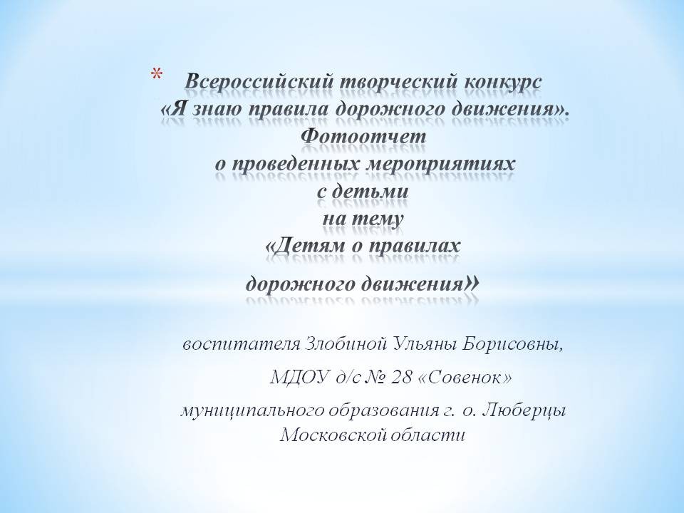 Всероссийский творческий конкурс «Я знаю правила дорожного движения»